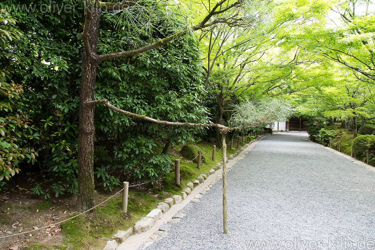 Zur Fahrt bis zum Ryoan-Ji kann man aber durchaus 45 Minuten einplanen, man sollte daher nicht allzu spät losfahren. Außerdem sind es von der Endstation („Ritsumeikan Daigaku mae“, 立命館 大学 前) nochmal gute 10-15 Minuten zu Fuß Richtung Westen, bis man endlich das Tempelgebiet erreicht hat.