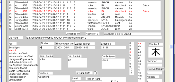 Mein Vokabeltrainer „Kyoshou“ wurde ab Mitte 2000 von Asymetrix Toolbook auf Macromedia Director portiert, mit dem Fokus auf Unicode-Darstellung.
